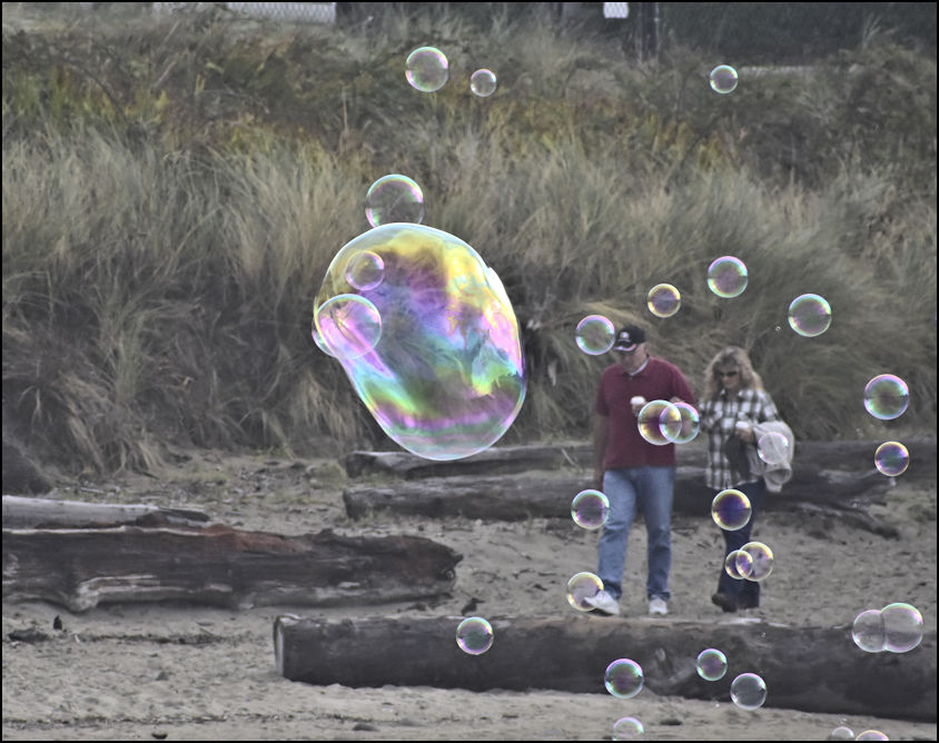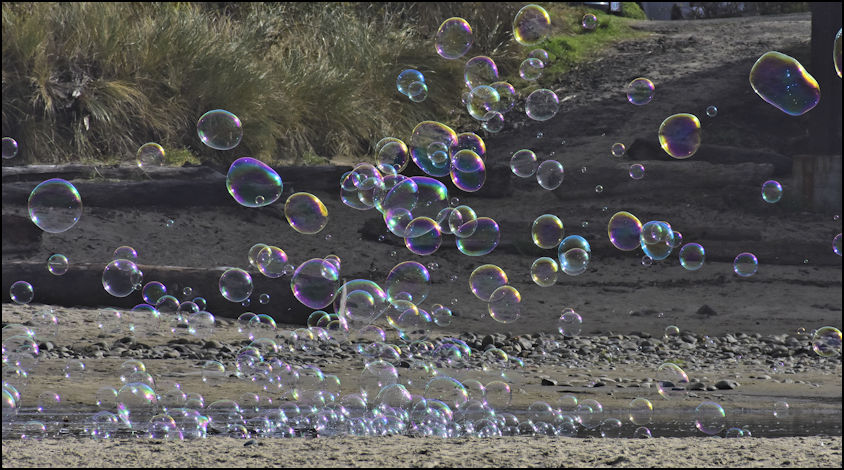 "Mr. Bubbles" We came across this character at "D" River. His bubble making formula was miraculous. Some of his creations were a couple of meters (6 ft.) in diameter and durable, surviving contact with the sand and water. He used a compressed air contraption to inflate them.