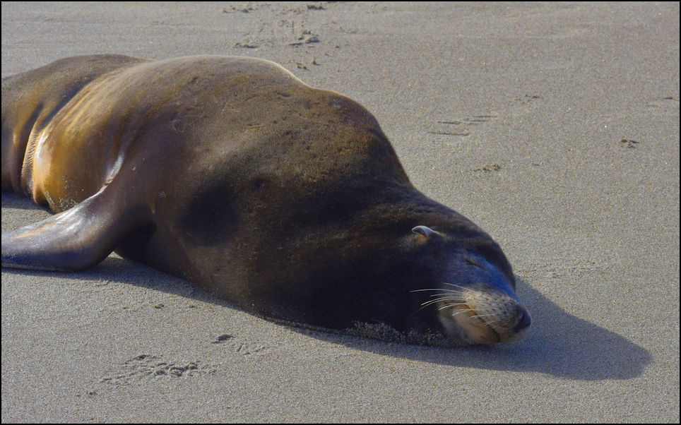 "Flipper" Needs a Nap This is the very common "Harbour Seal". Their main natural enemies in the water are sharks and orcas. On land they seem fearless and will haul out of the water almost anywhere for a snooze in the sun. Best to give them their space as they are quite able to defend themselves. Even dogs know enough to steer clear.