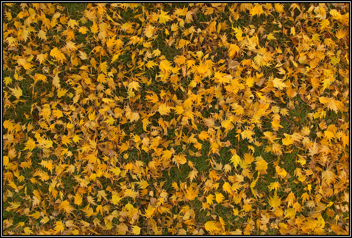 Birch Leaves on a Lawn Rule of thirds obviously inapplicable. The picture's appeal lies in the contrast between sameness and infinite variety. ![]() |